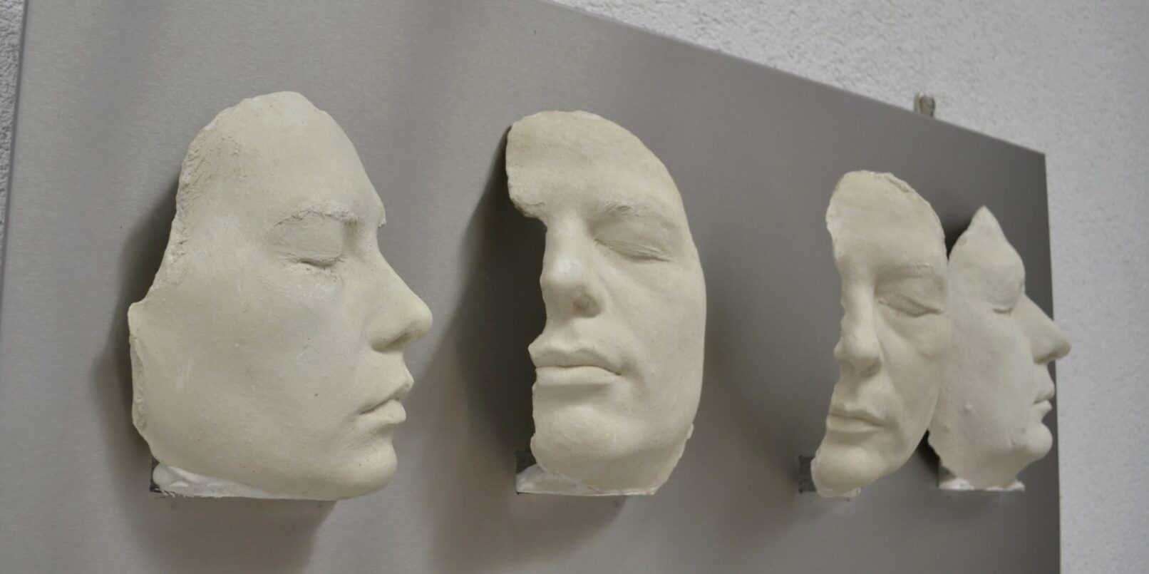 The degradation of humanity in modern times is even more pronounced when the two-dimensional image takes shape and while screen printing technique replaces the digital print. Despite the fact that with the colors indicating the diverse experience and dictates the mood, the result is always the same. Plaster casting as contemplative face at the end of the battle becomes deformed human soul. As a mirror by the artist to the viewer adjusts to reflect where you are in this world and the structure itself is located.